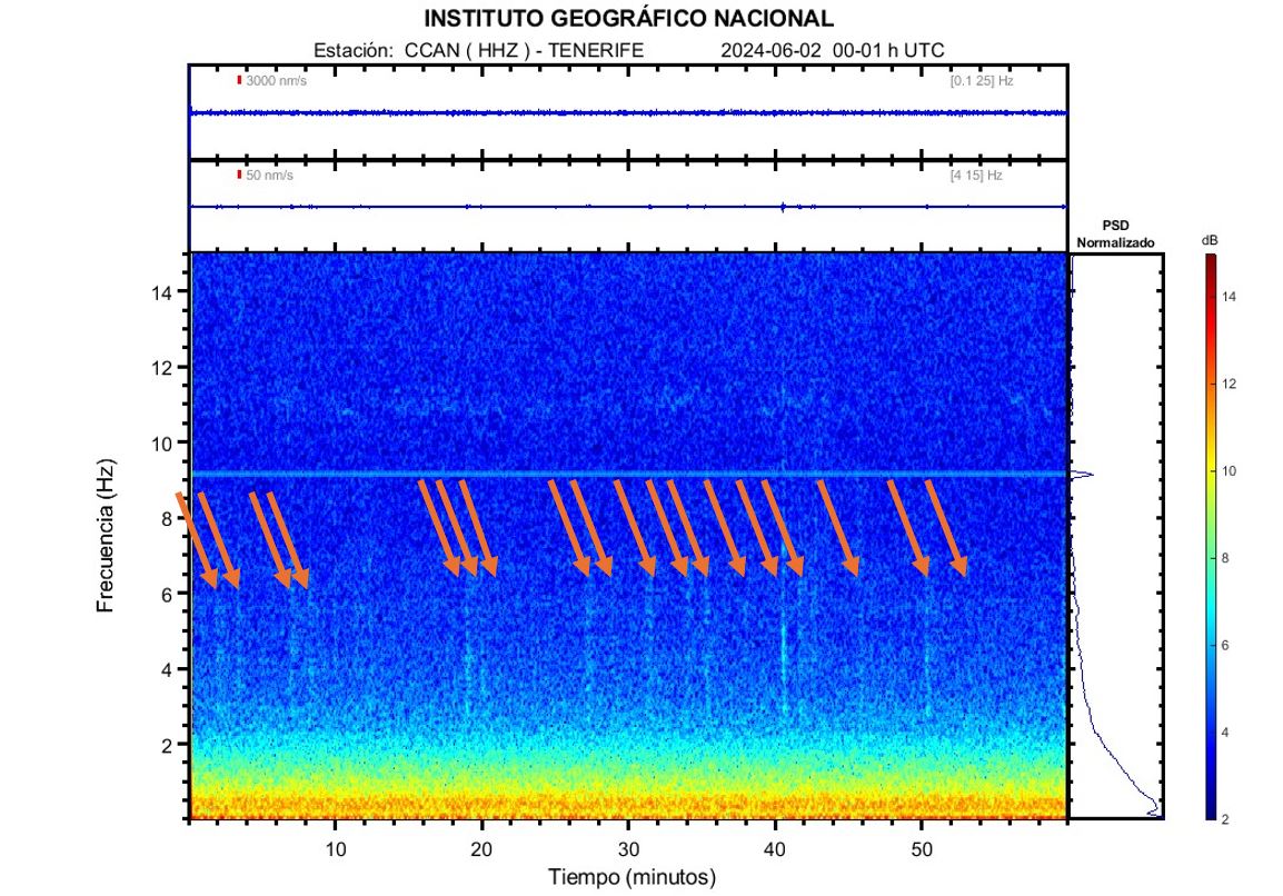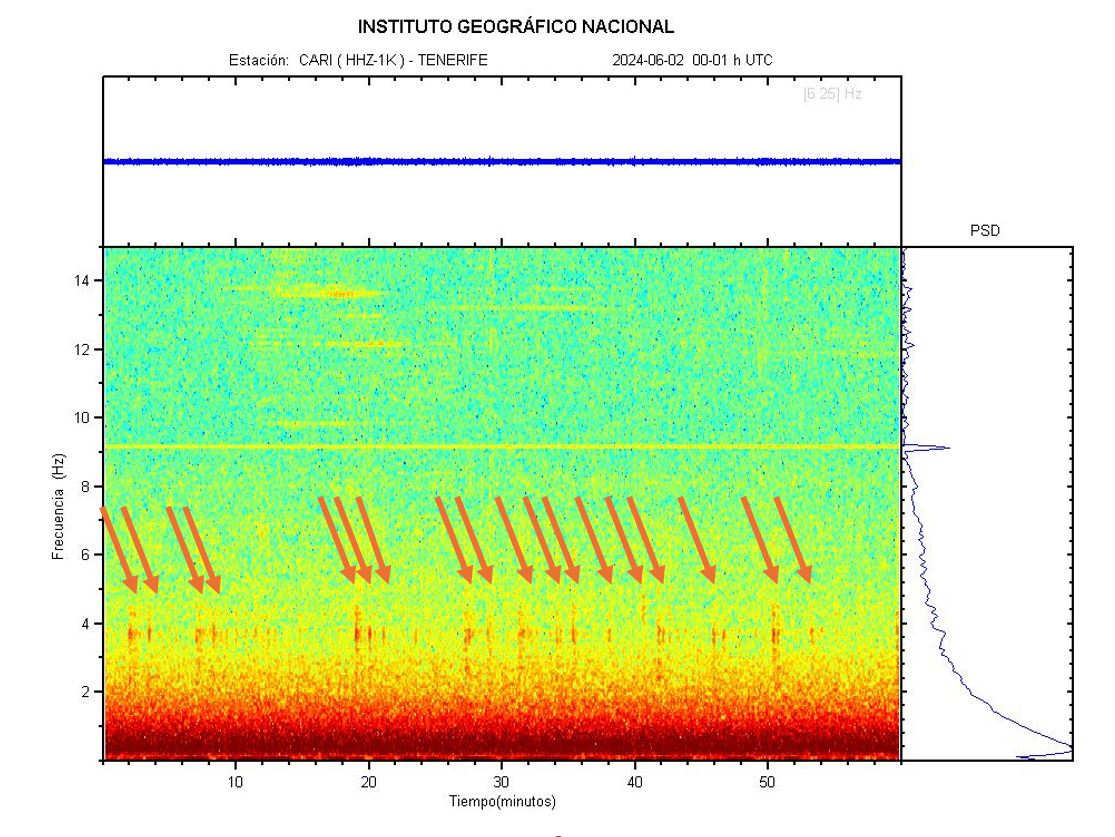 Desde las 18h del día 1 de junio de 2024 hasta las 7h del día 2 de junio se han detectado al menos 50 eventos de baja frecuencia y muy baja magnitud en tres estaciones de la red de vigilancia situadas en el interior de la isla de Tenerife.