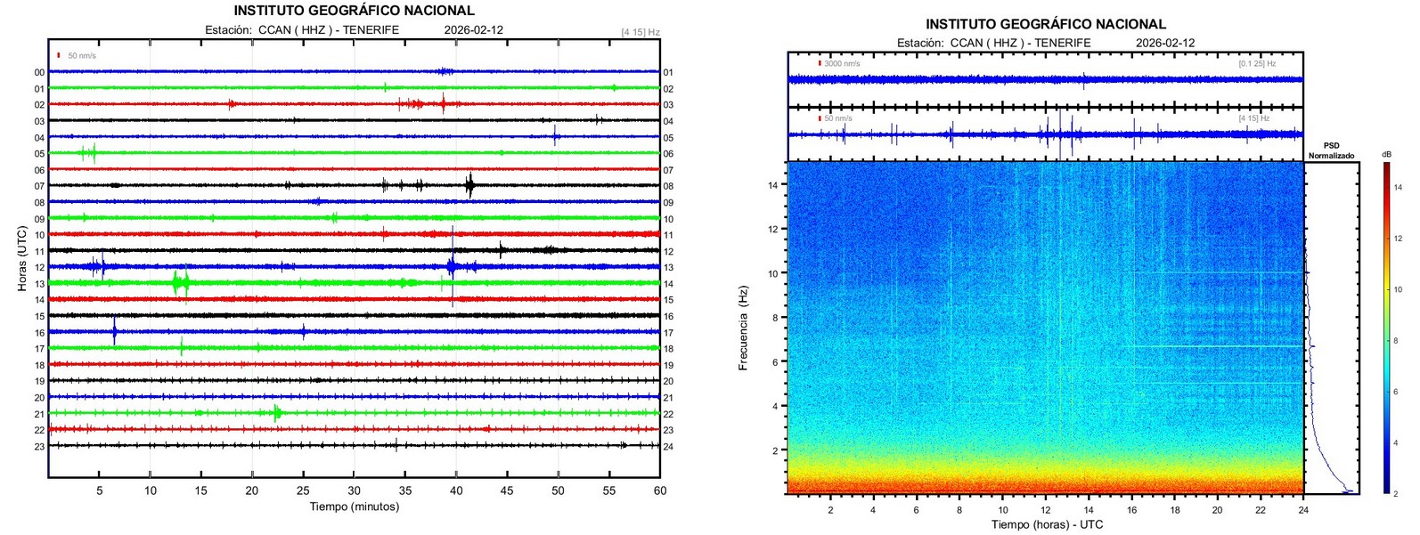 Desde la tarde del 12 de febrero, la Red Sísmica Nacional del IGN ha detectado un nuevo enjambre sísmico en la isla de Tenerife. Se han identificado 876 eventos sísmicos de muy baja magnitud, siendo la máxima de 0,7 mbLg, lo que hace que sea un enjambre de muy baja energía. Debido a su baja magnitud, no es posible localizar todos los eventos sísmicos de forma individual. No obstante, el análisis conjunto de la serie indica que se ha producido en la zona oeste de Las Cañadas del Teide, un área donde ya se han registrado enjambres sísmicos de características similares en octubre de 2016, junio de 2019, junio y julio de 2022, noviembre de 2024 y agosto de 2025. La profundidad estimada de esta serie es de unos 8 km por debajo del nivel del mar, coherente también con la de episodios anteriores.