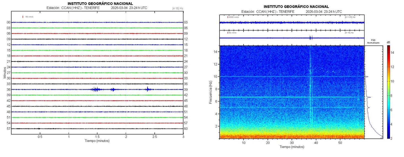 Una leve actividad sismovolcánica ha vuelto a aparecer en las últimas horas bajo la isla de Tenerife. Alrededor de las 23:30 (hora UTC) del 4 de marzo comenzó una actividad sísmica de eventos de baja frecuencia en Las Cañadas en forma de pulsos de eventos LP y también decenas de eventos híbridos intercalados con estos.