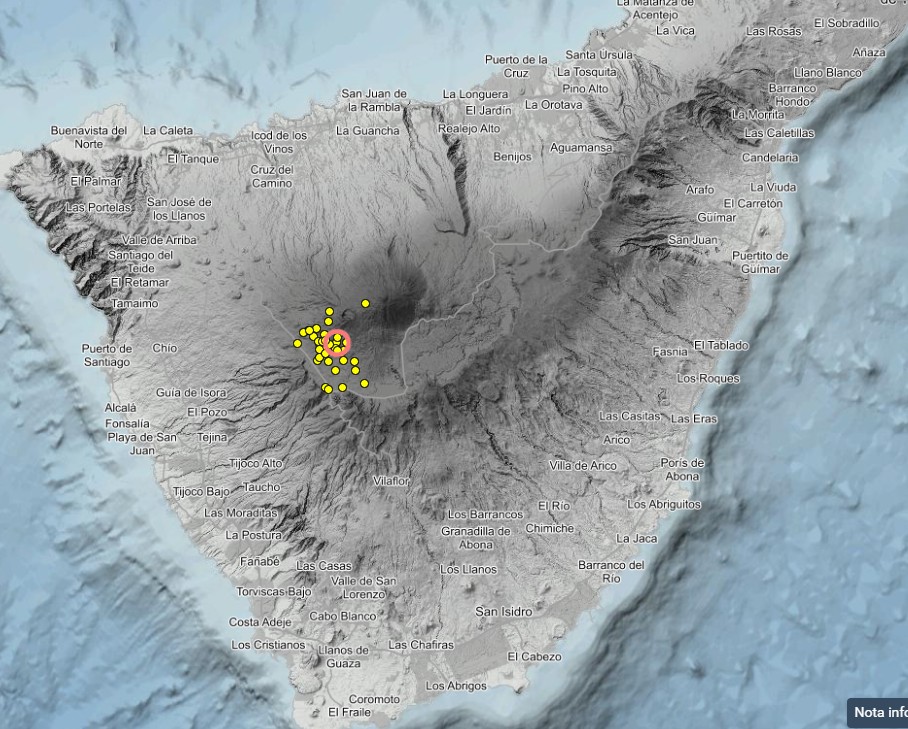 Entre las 04:00 y las 07:20 (UTC) de esta madrugada se ha producido una actividad microsísmica anómala localizada en las Cañadas del Teide, al suroeste de Pico Viejo, con al menos 500 terremotos detectados en la misma zona en la que se ha venido registrando en los últimos años (Octubre 2016, Junio 2019 y Junio y Julio de 2022).